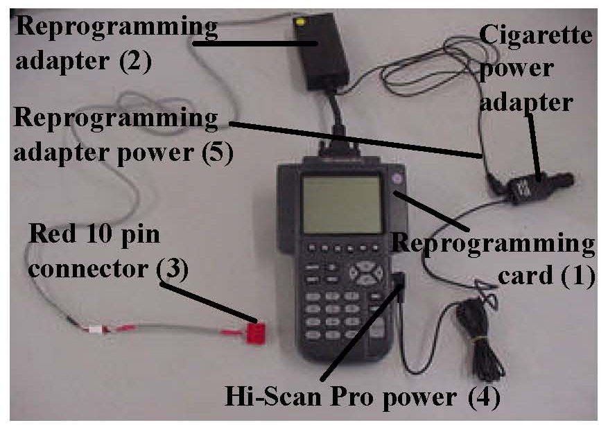2. Assure that no cables connected to the vehicle or to the Hi-Scan Pro are disconnected during the reprogramming.