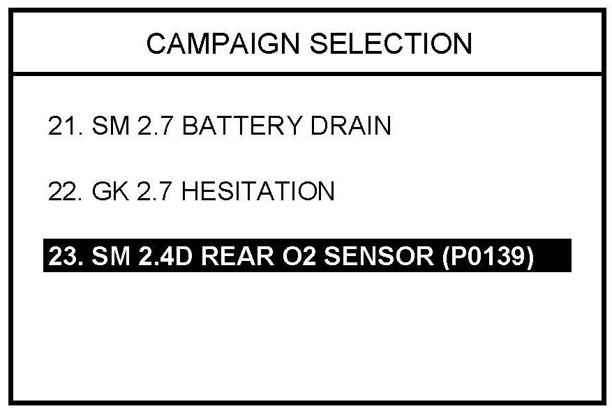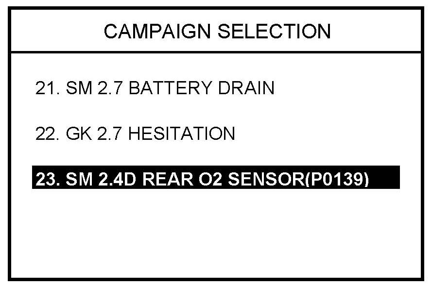 3. Select menu option "23. SM 2.4D REAR O2 SENSOR(P0139)" and press ENTER.