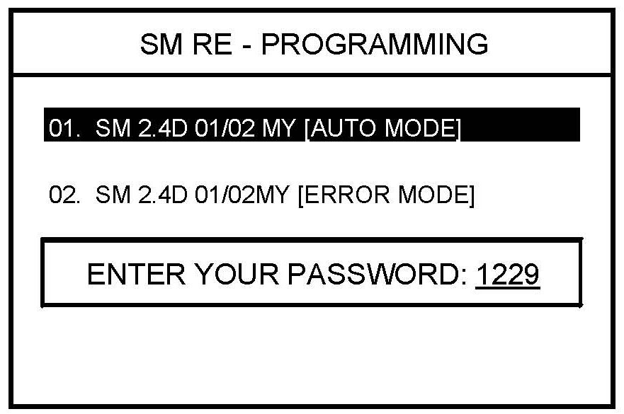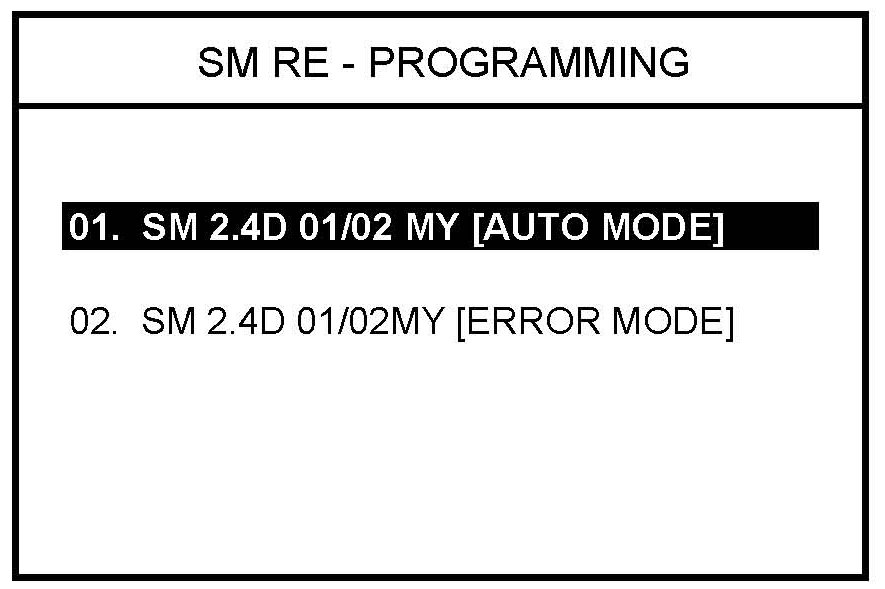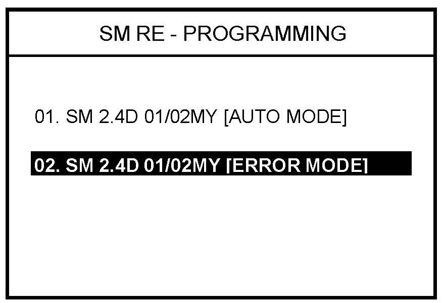 4. Select option "02. SM 2.4D 01/02MY [ERROR MODE]" and press ENTER.
