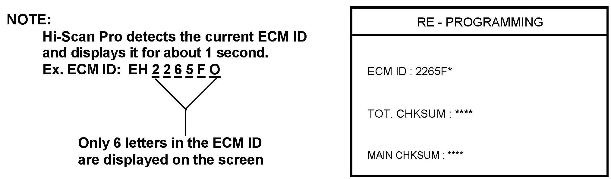 ^ Write down the old and new ECM IDs when displayed on the Hi-Scan Pro screen during the automatic update procedure. They will be needed if the Hi-Scan Pro fails to automatically download the new ECM software.
