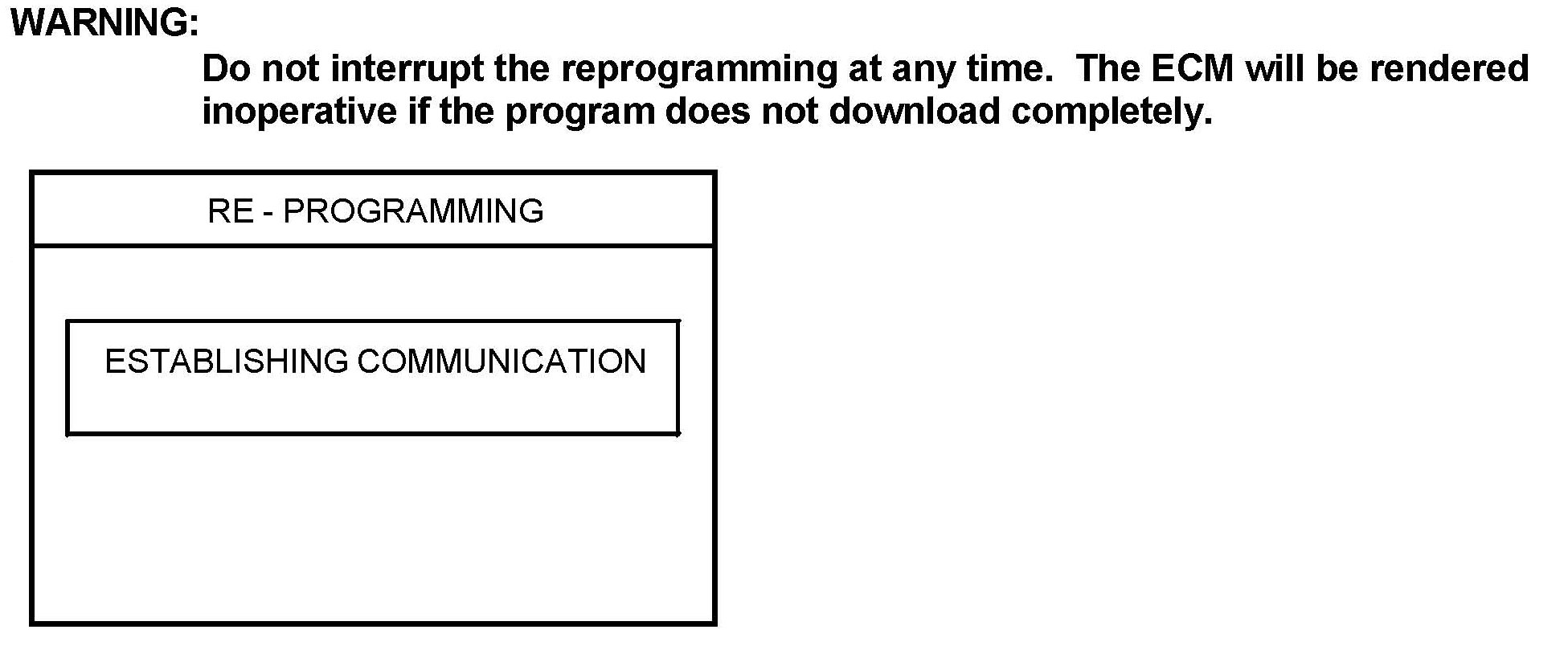Do not interrupt the reprogramming at any time. The ECM will be rendered inoperative if the program does not download completely.