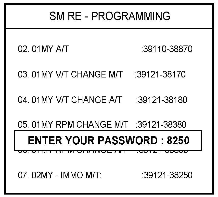 5. Choose option "07. 02MY - IMMO M/T: 39121-38250" and press ENTER.