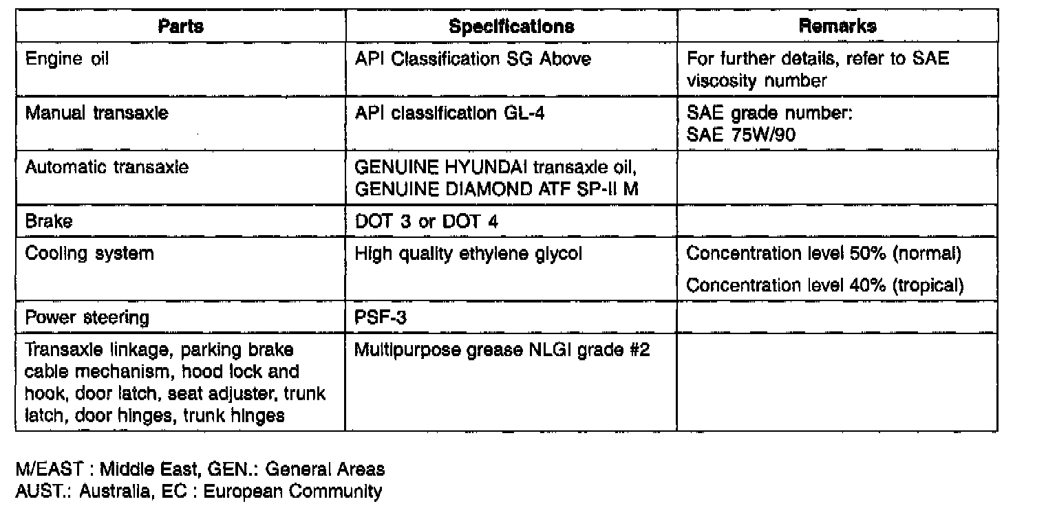 General Fluid Specifications
