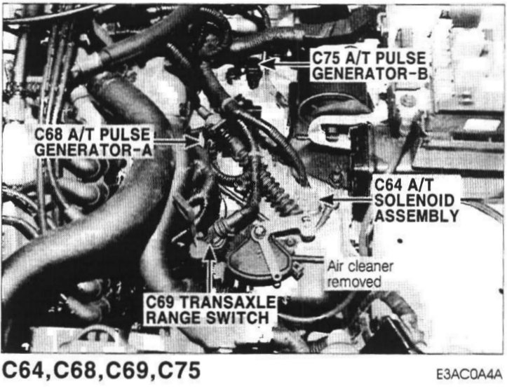 C64 A/T Solenoid Assembly, C68 A/T Pulse Generator A, C69 Transaxle Range Switch, C75 A/T Pulse Generator B: