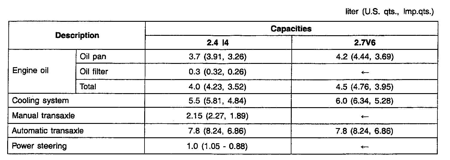 Lubricants Capacities: