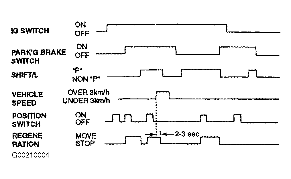 Parking brake switch OFF and shift lever positioned except "P" position (A/T).