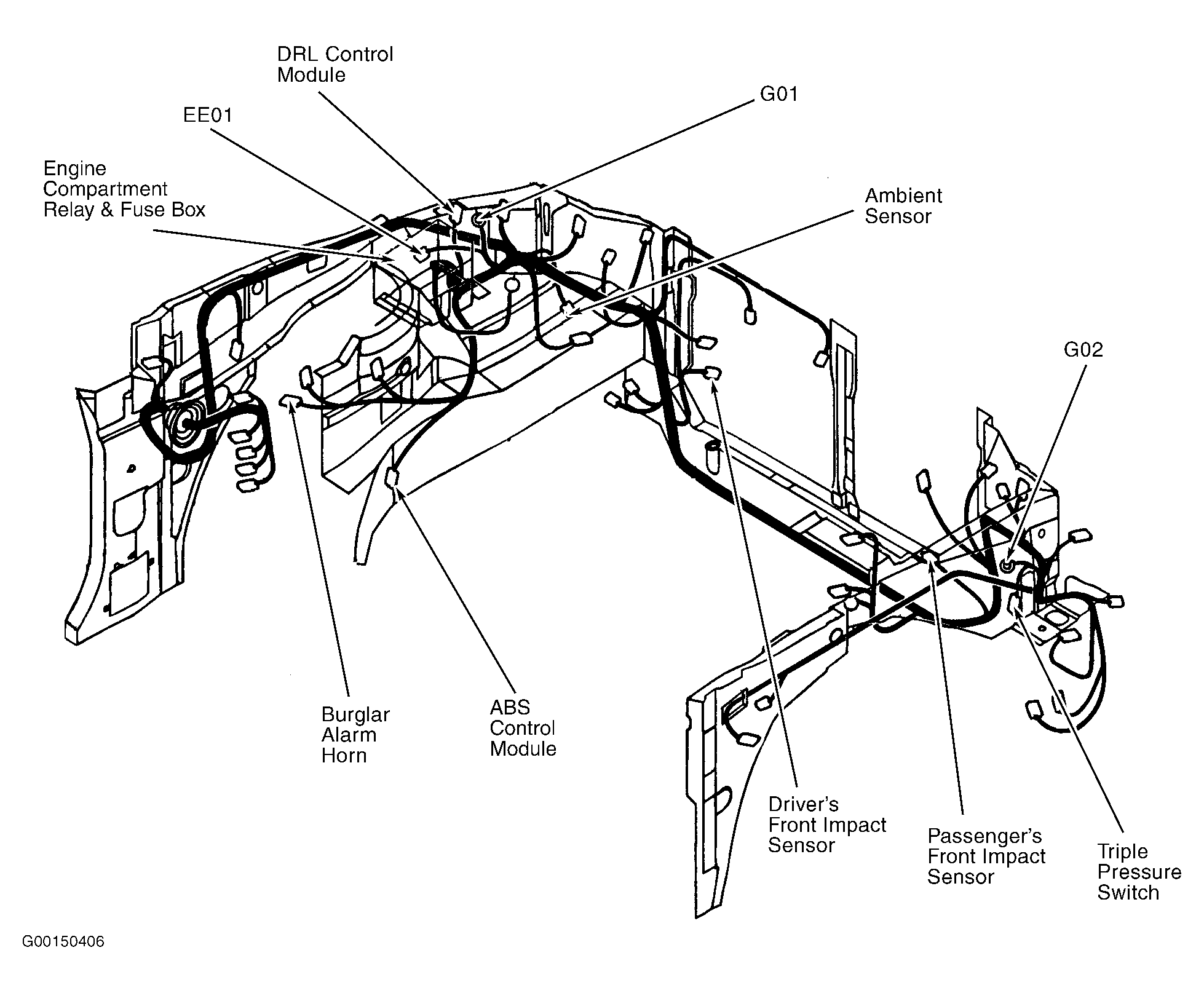 Engine Compartment Relay & Fuse Box On left side of engine compartment, in front of strut tower. See Figure.