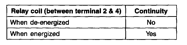1. Check Continuity of relay contacts between terminals 5 (+) and 1 (-).