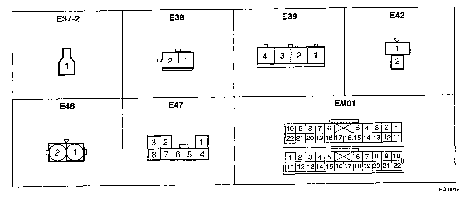 This shows the cavity or terminal locations in all the multi-pin connectors shown in the schematic diagrams. It will help you to locate check points, together with the wire colors and terminal numbers in the schematic. The configuration drawings show the connector view as seen from a component after the harness connector has been disconnected. When more than one connector is connected to a component, the connectors are all shown together. Both halves of in-line connectors are shown together.