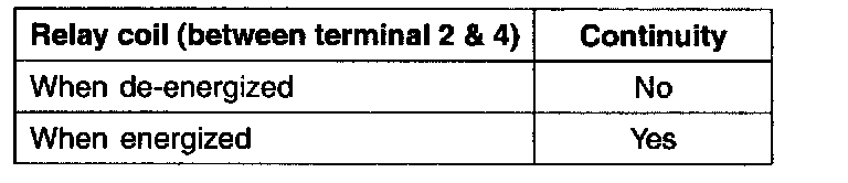 1. Check the continuity of relay contacts between terminals 5 (+) and 1 (-).