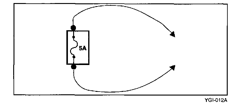 b. Connect one lead of a self-powered test lamp or an ohmmeter to the fuse terminal on the load side.