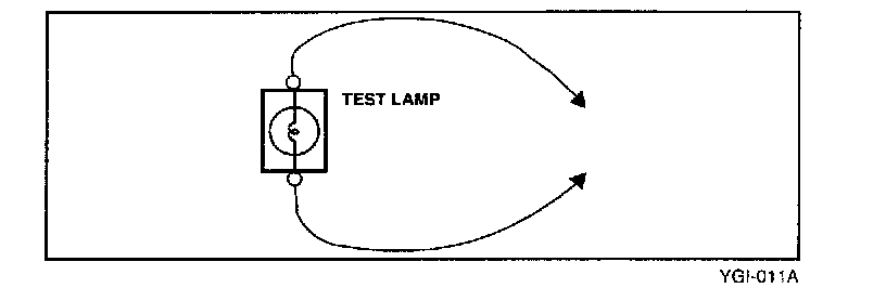 b. Connect the other lead of the test lamp or voltmeter to a selected test point(connector or terminal).