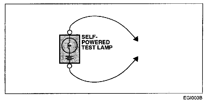 b. Connect one lead of a self-powered test lamp or ohmmeter to one end of the part of the circuit you wish to test. If you are using an ohmmeter, hold the leads together and adjust the ohmmeter to read zero ohms.