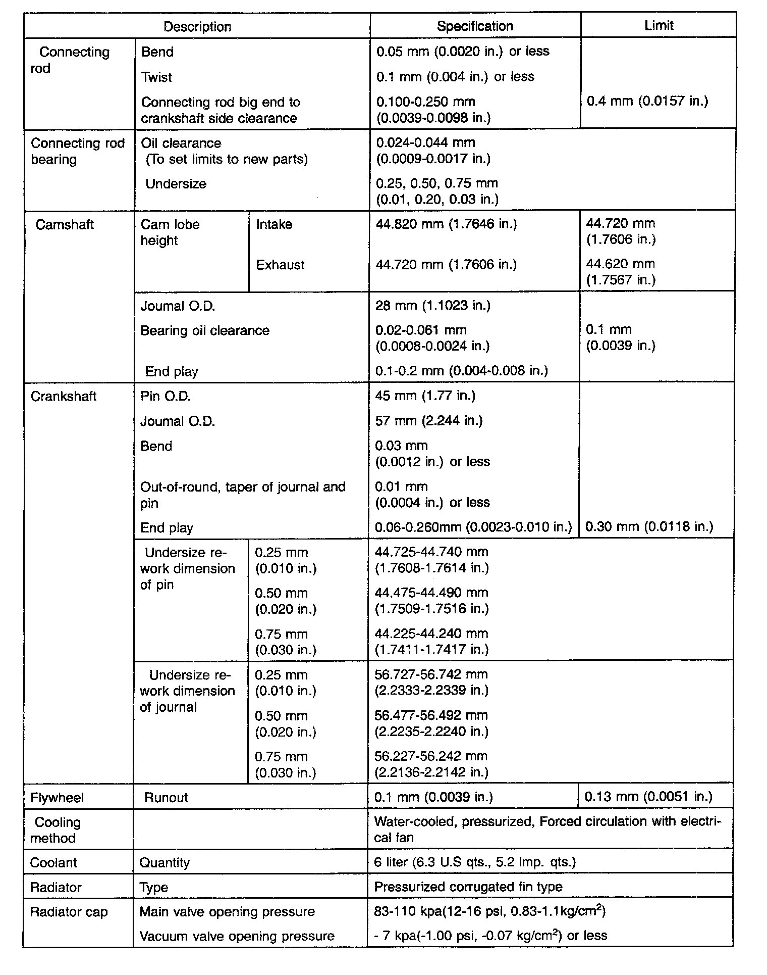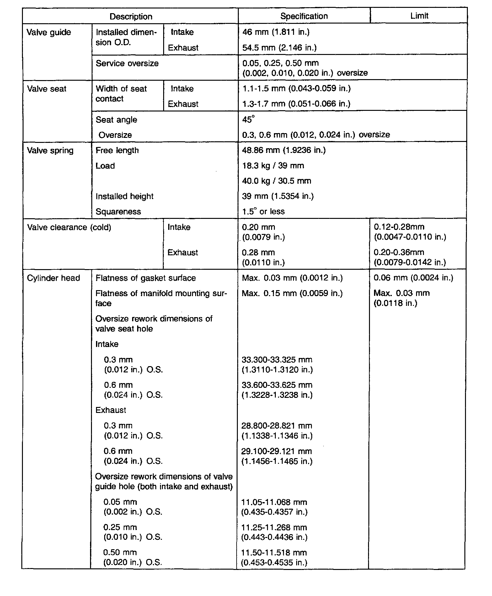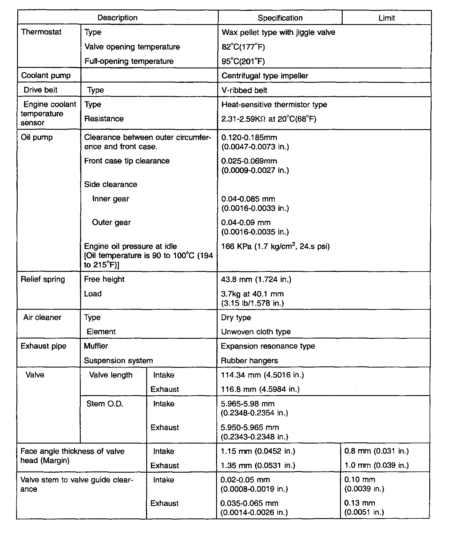 Specification Table