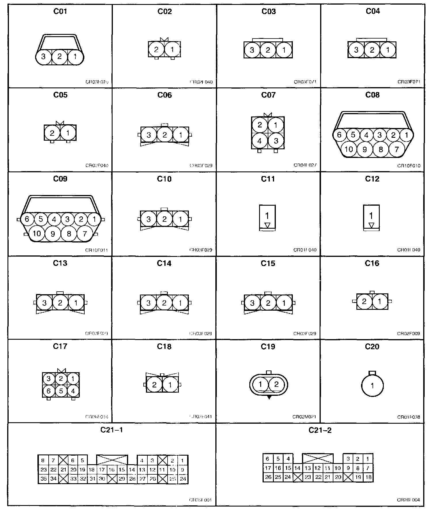 PCM Connector Views C21-1 through C21-4