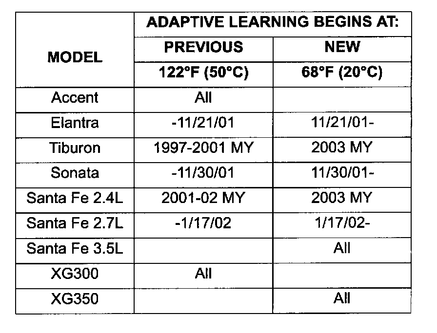 Home >> Hyundai >> 2003 >> Santa Fe L4-2.4L >> Repair and Diagnosis >> Powertrain Management >> Transmission Control Systems >> Relays and Modules - Transmission and Drivetrain >> Relays and Modules - A/T >> Control Module >> Technical Service Bulletins >> All Technical Service Bulletins >> A/T - TCM Adaptive Learning Procedure