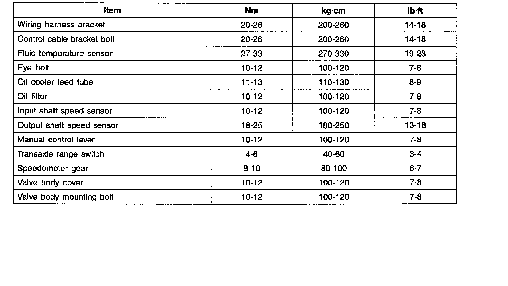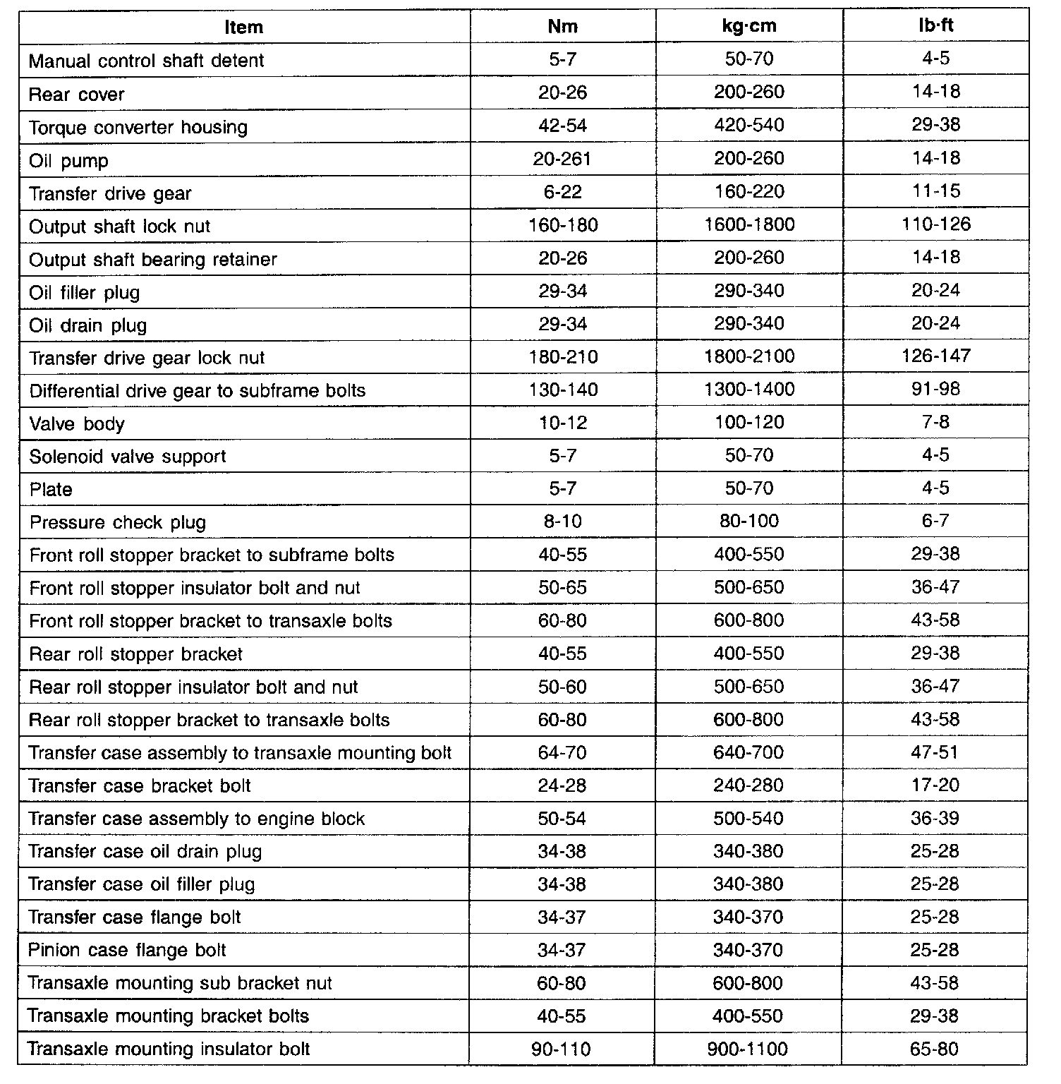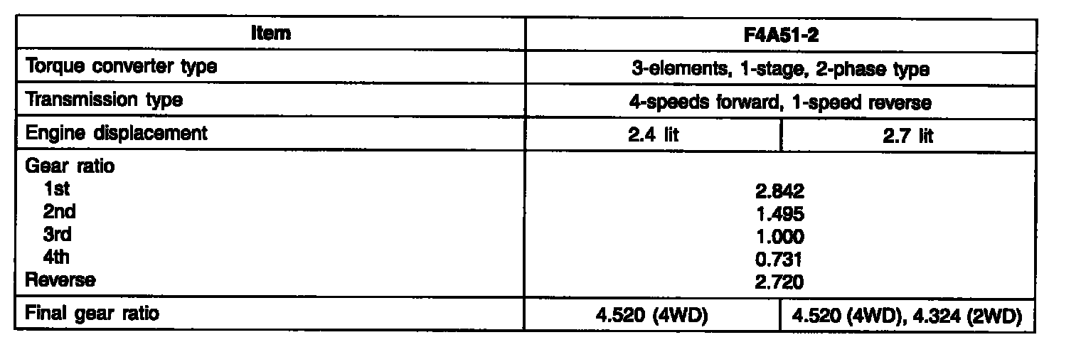 SPECIFICATIONS (A/T)