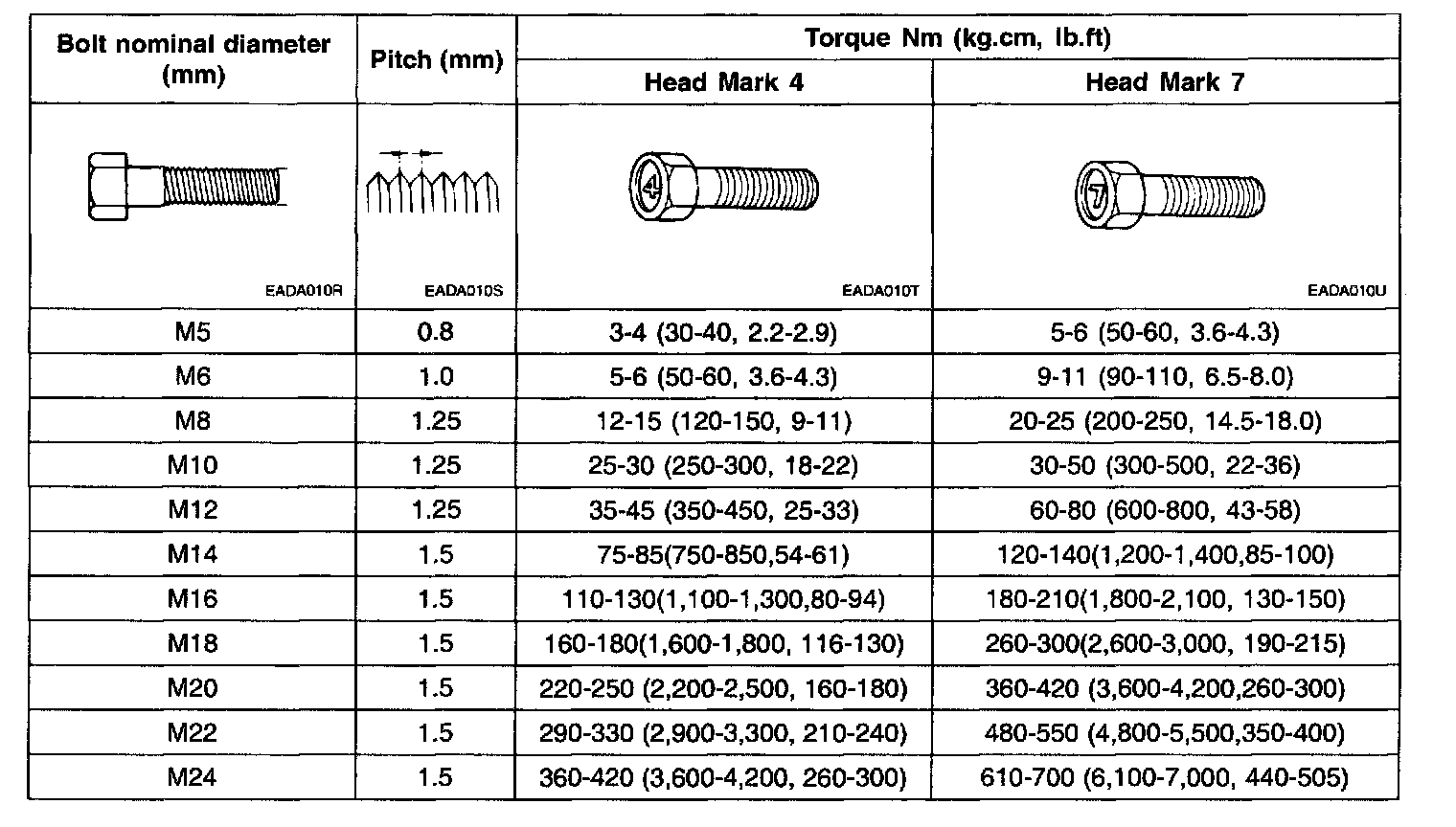 2. The torques shown in the table are not applicable: