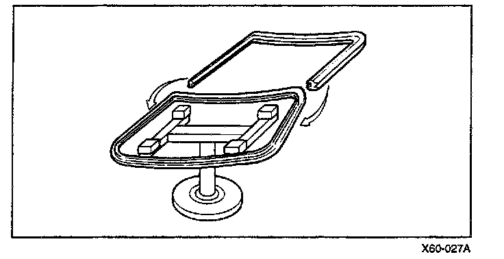 10. Using suction cups or the special tool (09861 - 31400), lower the glass over the opening, align it with the marks made in step 3 and set it down on the sealant.
