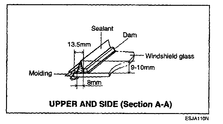 12. After one hour, perform a water-leak test for the windshield. Use a cold water spray, being careful not to direct a. powerful stream of water on the new adhesive material. Allow water to spill over the edges of the glass.