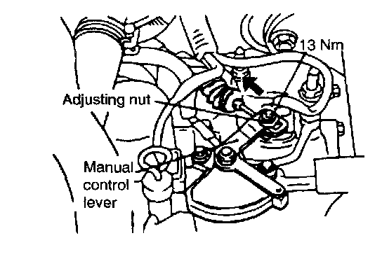 2. Loosen the control cable to the manual control lever coupling nut to free the cable and lever.
