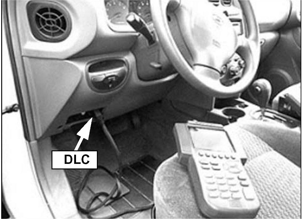 3. Plug the DLC cable from the Hi-Scan Pro into the data link connector (16 pin connector) under the driver's side instrument panel (behind the fuse box lid).