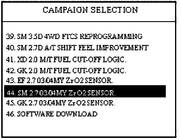 6. Select option "44. SM 2.7 03/04 MY Zr 02 SENSOR." and press ENTER.