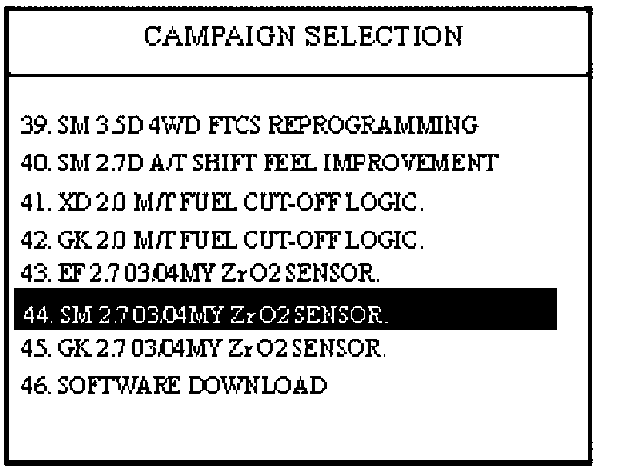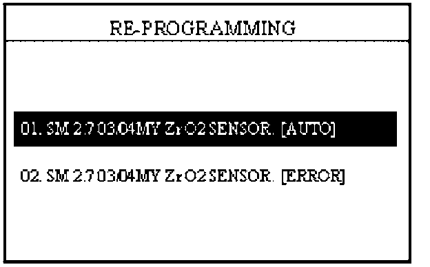 In the event that option "01. SM 2.7 03/04 MY Zr 02 SENSOR. [AUTO]" fails to download the new ECM program, option "02. SM 2.7 03/04 MY Zr 02 SENSOR. [ERROR]" must be used.