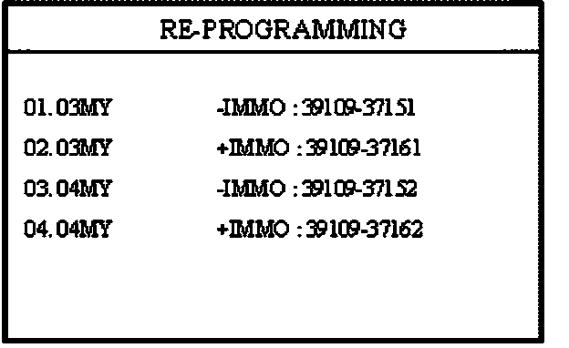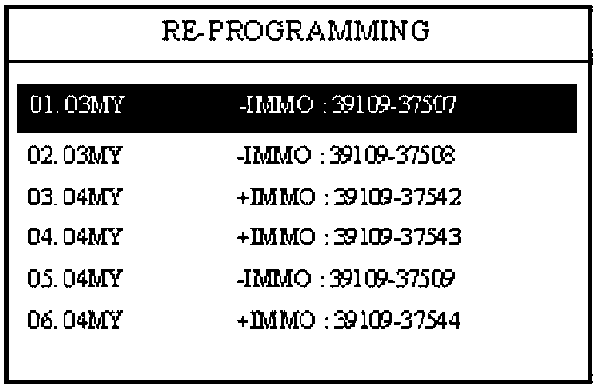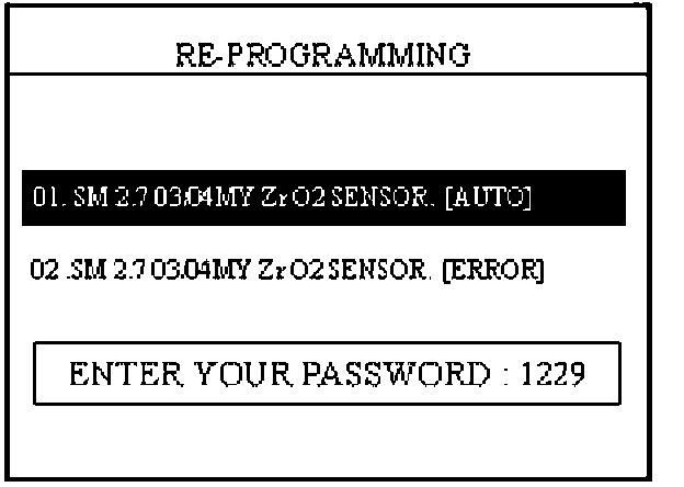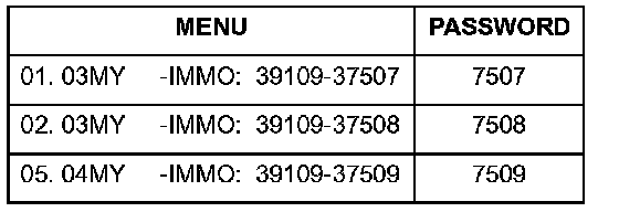 6. Select the correct password for the manual update mode which is correct for the vehicle specification by referring to the chart shown. Then press ENTER.