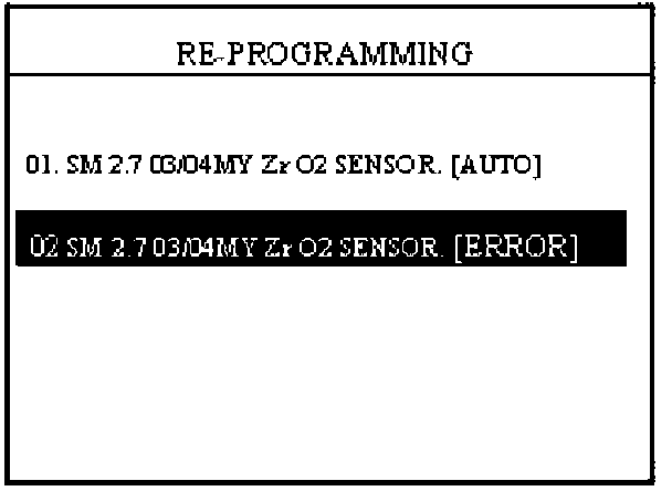 4. Select option "02. SM 2.7 03/04 MY Zr 02 SENSOR. [ERROR]" and press ENTER.