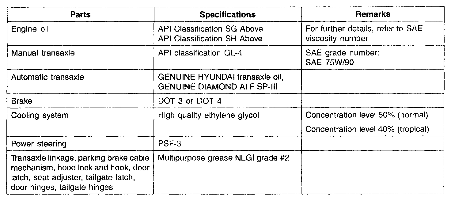 General Fluid Specifications