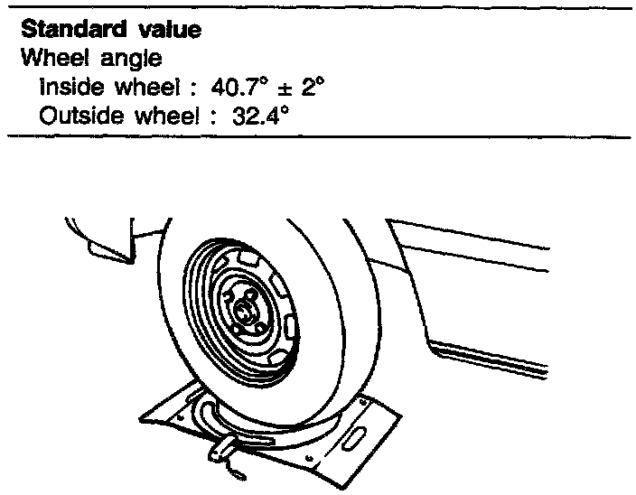 1. Place the front wheel on a turning radius gauge and measure the steering angle.