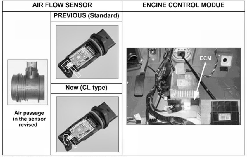 Home >> Hyundai >> 2003 >> Sonata L4-2.4L >> Repair and Diagnosis >> Powertrain Management >> Relays and Modules - Powertrain Management >> Relays and Modules - Computers and Control Systems >> Engine Control Module >> Technical Service Bulletins >> All Technical Service Bulletins >> Engine Controls - ECM/Airflow Sensor Application