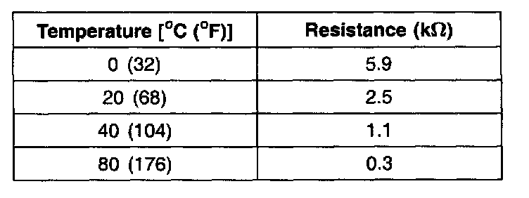 2. With temperature sensing portion of engine coolant temperature sensor immersed in hot engine coolant, check resistance.
