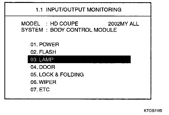 Select "03.LAMP" and press [ENTER]. Then the following screen will be displayed.