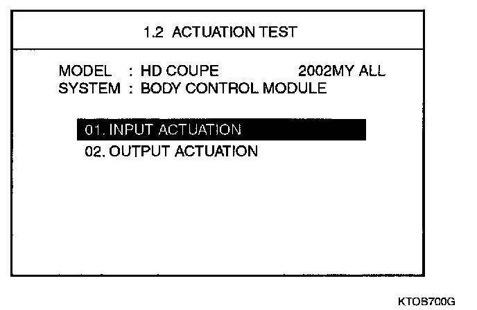 Select "01 INPUT ACTUATION" and press [ENTER].