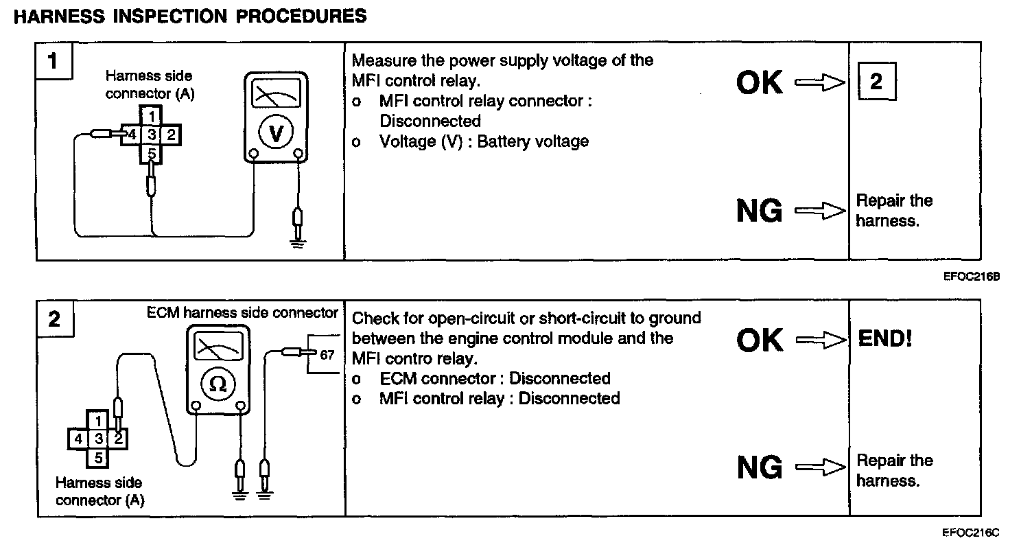 Main Relay (Computer/Fuel System): Testing and Inspection