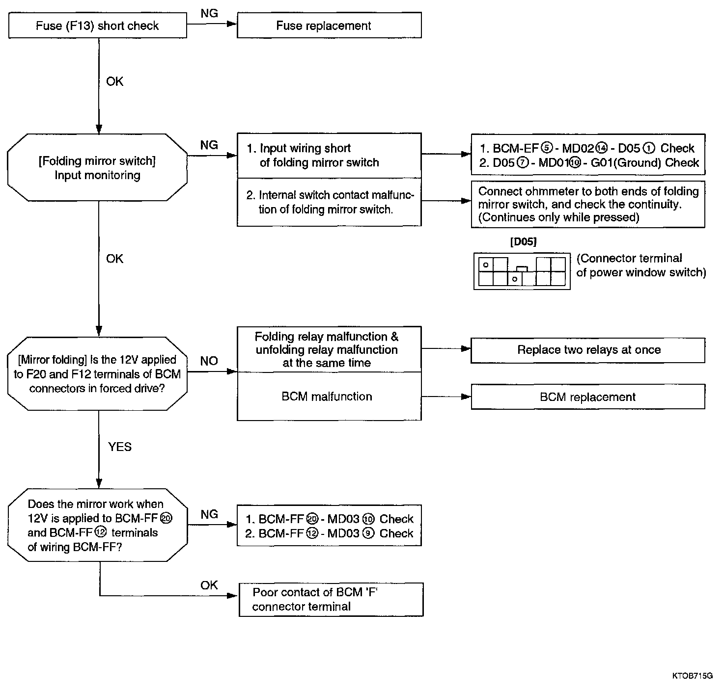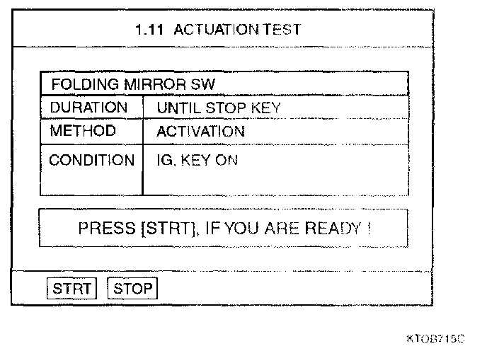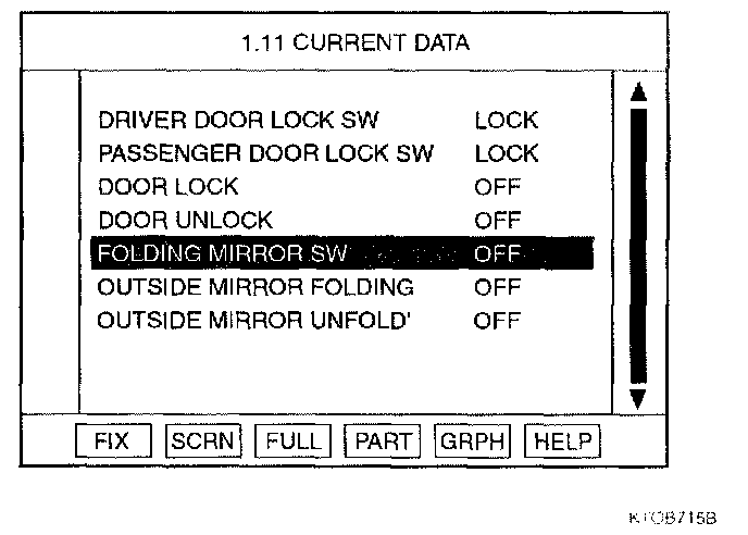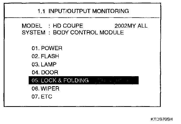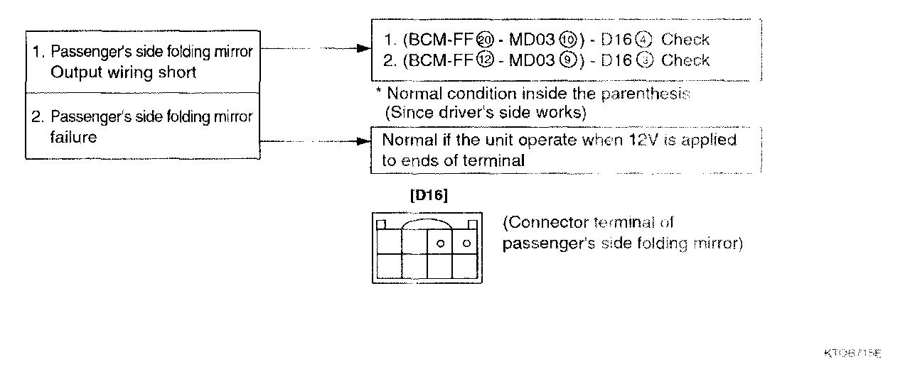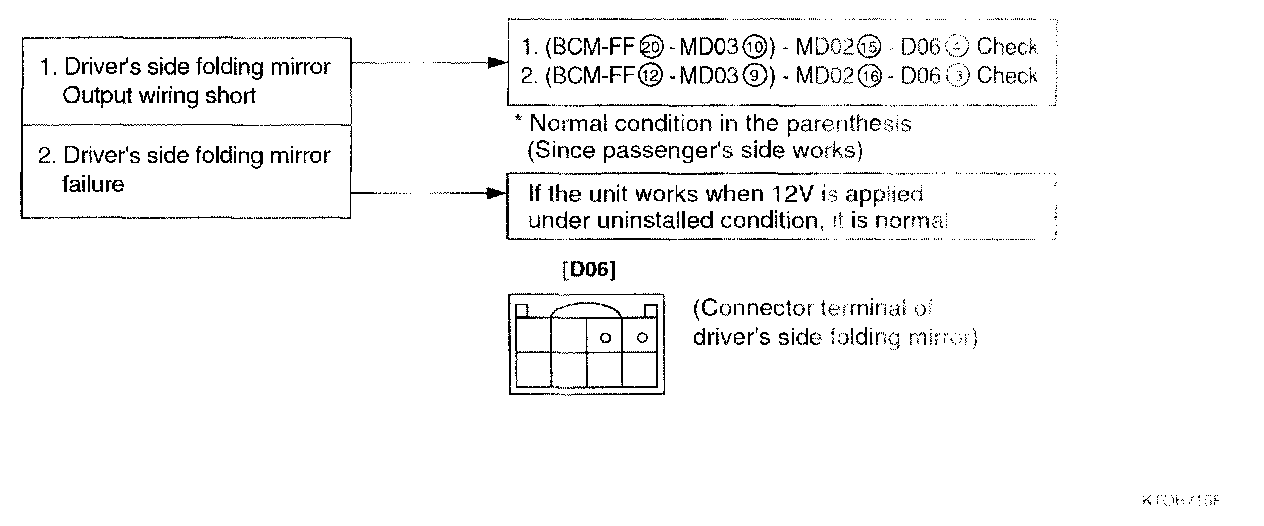 Home >> Hyundai >> 2003 >> Tiburon L4-2.0L >> Repair and Diagnosis >> Powertrain Management >> Computers and Control Systems >> Relays and Modules - Computers and Control Systems >> Body Control Module >> Testing and Inspection >> Component Tests and General Diagnostics >> Outside Mirror Folding Function