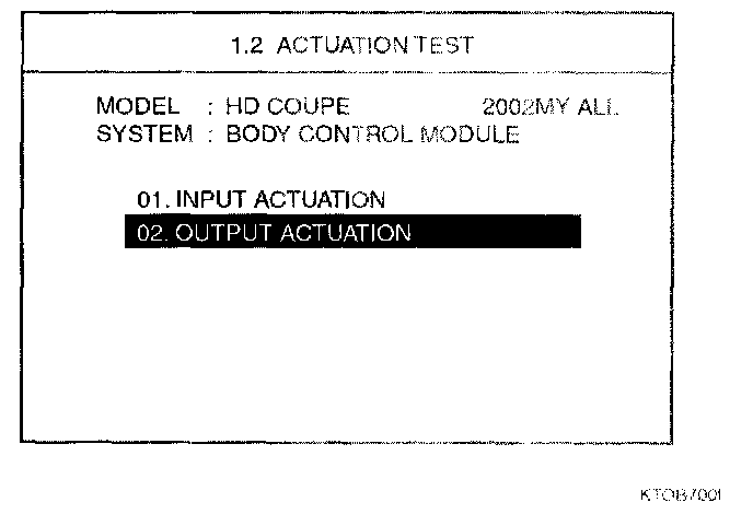 2. Select "02.0UTPUT ACTUATION" and then press [ENTER].