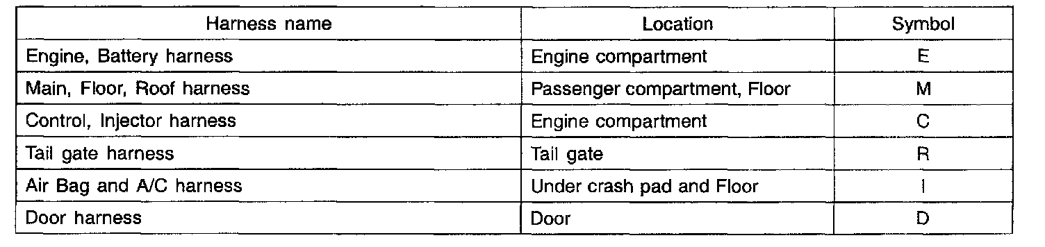 Electrical wiring connectors are classified according to the wiring parts in the Harness Layouts.