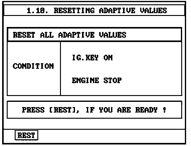 6. With the key in the "ON" position and the engine not running, press the F1 button to reset the adaptation values.
