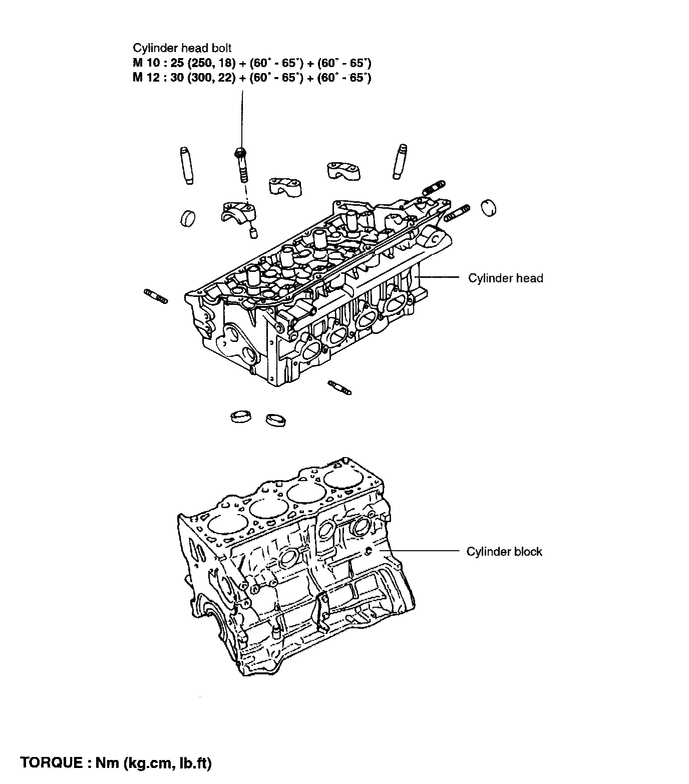 M10: .......................25 Nm (250kg.cm, 18 ft. lbs.)+(60°- 65°)+(60°- 65°)