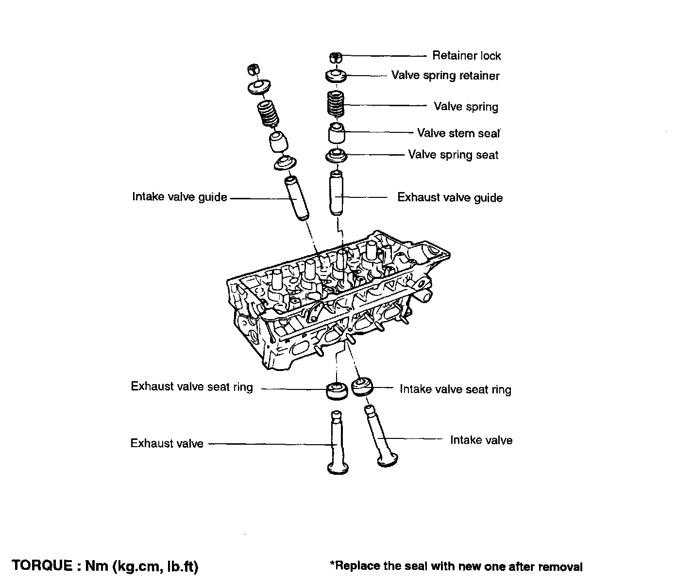 Intake manifold to cylinder head nuts and bolts 16-23 Nm (160-230 kg-cm, 12-17 ft. lbs.)