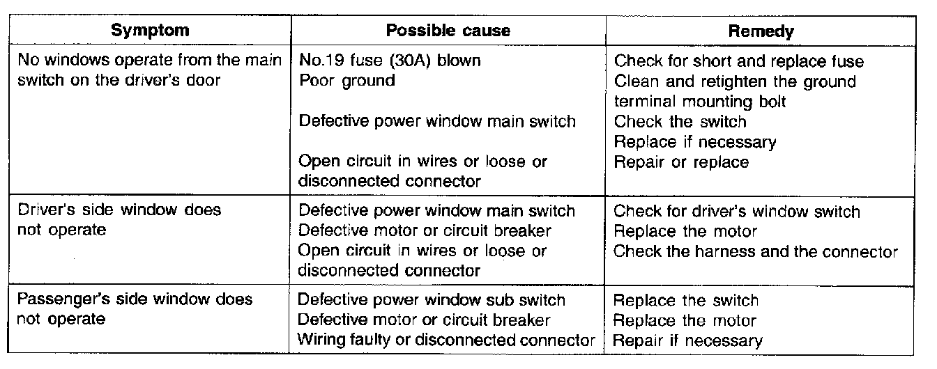 Troubleshooting - Power Window: