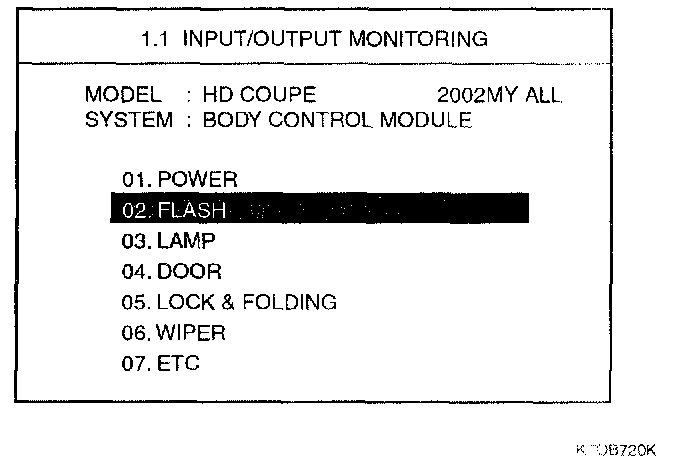 Home >> Hyundai >> 2003 >> Tiburon V6-2.7L >> Repair and Diagnosis >> Body and Frame >> Body Control Systems >> Body Control Module >> Testing and Inspection >> Component Tests and General Diagnostics >> Flasher Function