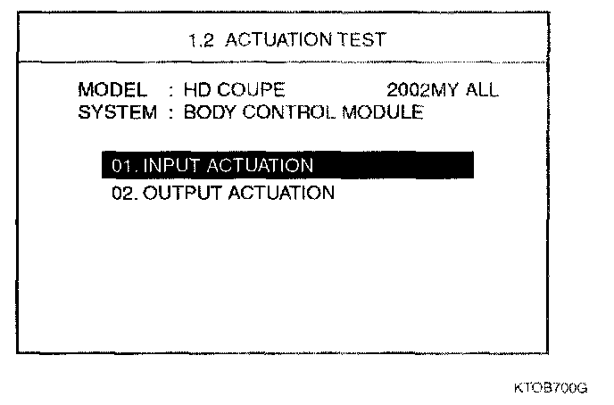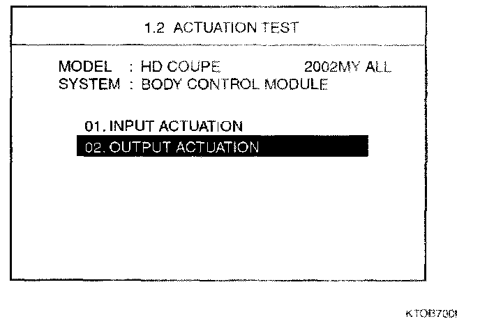 2. Select "02 OUTPUT ACTUATION" and then press [ENTER].