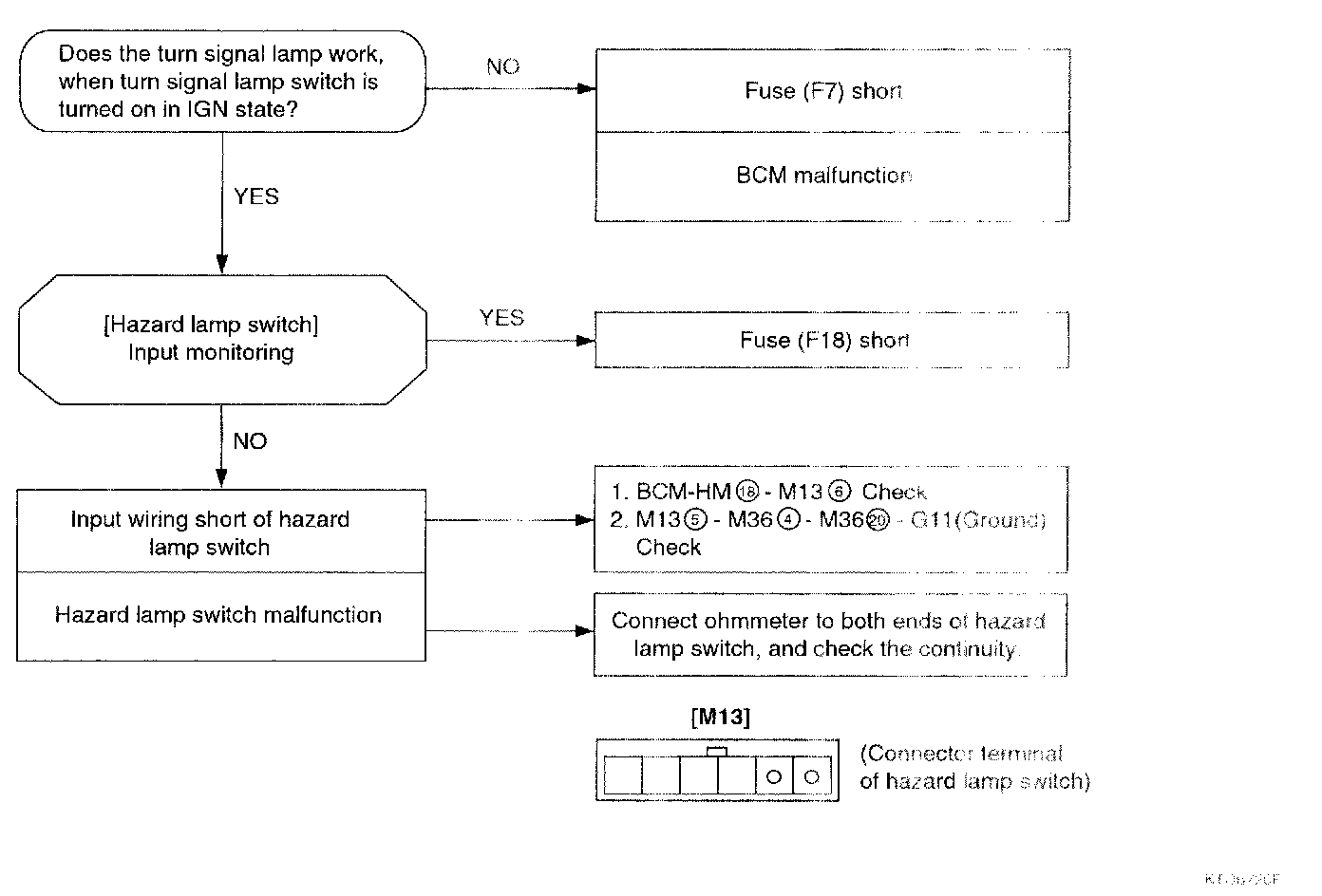 - Input Hazard switch (H18), left turn signal switch (H13), right turn signal switch (H3)