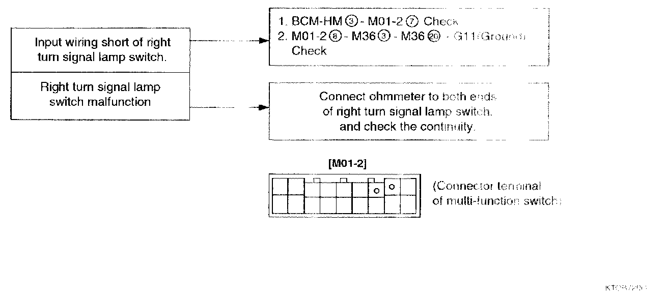 2. Right turn signal lamp does not work.