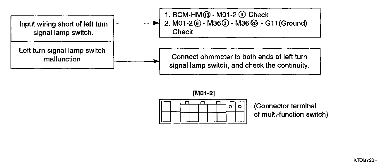 3. Left turn signal lamp does not work.