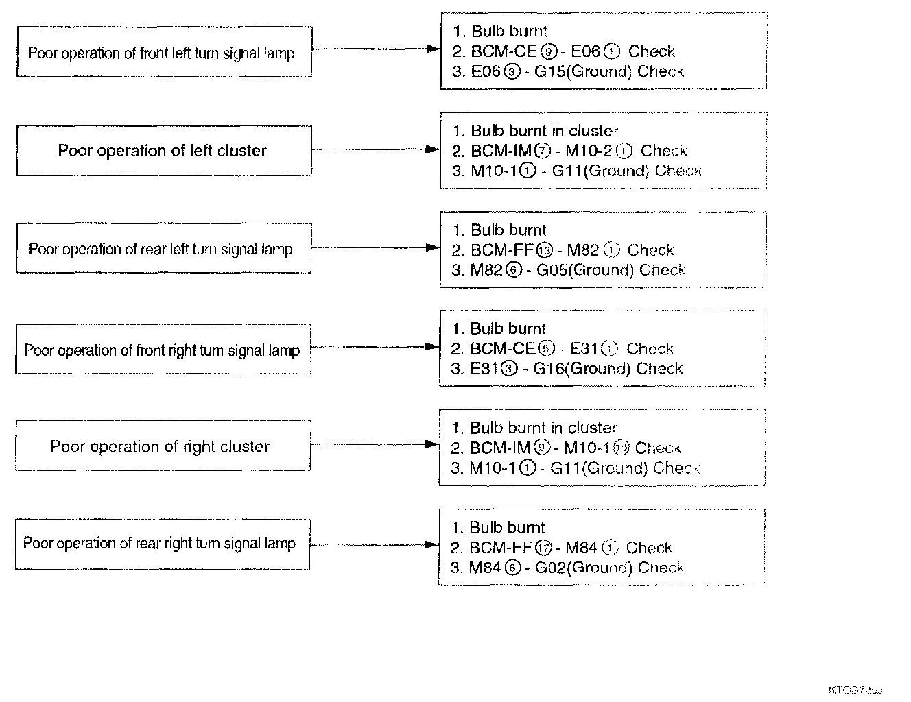 5. One turn signal lamp does not work.
